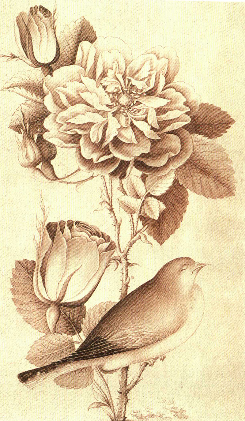 گل و مرغ (مرغ خواب)/ محمدباقر/ قرن سیزدهم هجری قمری/ 17 در 10.5 سانتی متر