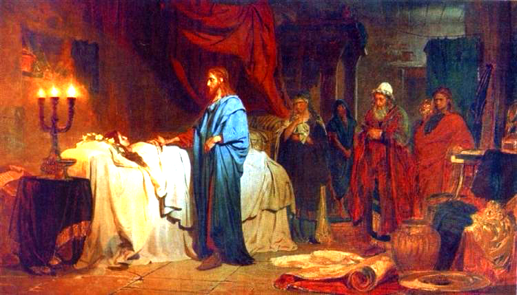 پرده «مسیح در حال زنده کردن دختر جایروس» به عنوان بخشی از یک رقابت دانشجویی، بر مضمونی از کتاب انجیل است که در سال 1871 توسط ایلیا رپین کشیده شد و وی را به دریافت مدال طلایی و سفر رایگان دانشجویی نایل گردانید. رپین هنگام کار بر این پرده عظیم و جاودانی، نه تنها ضوابط علمی و آموزشی را کاملا به کار بست بلکه همزمان چیزی هم فراتر رفت. او شیوه عالی و بینظیری را که در دانشگاه آموخته بود نه به عنوان نظامی فرمایشی بلکه به عنوان سنتی جالب تفسیر میکرد که با قابلیت هنر در بازتاب عظمت روح بشری پیوند داشت.