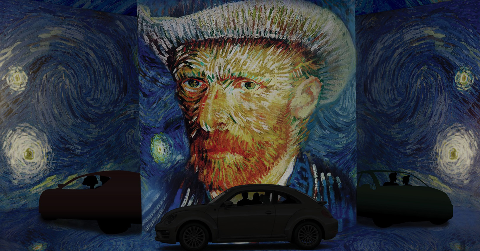 نمایشگاه نورپردازی از تابلوهای نقاشی «ونگوگ» در «تورنتو» واقع در کانادا این امکان را برای بازدیدکنندکان فراهم کرده تا از داخل خودروهای شخصی خود از این نمایشگاه دیدن کنند.