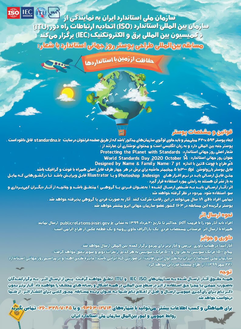 مسابقه بین‌المللی طراحی پوستر روز جهانی استاندارد با شعار«حفاظت از زمین با استاندارد‌ها» برگزار می‌شود.