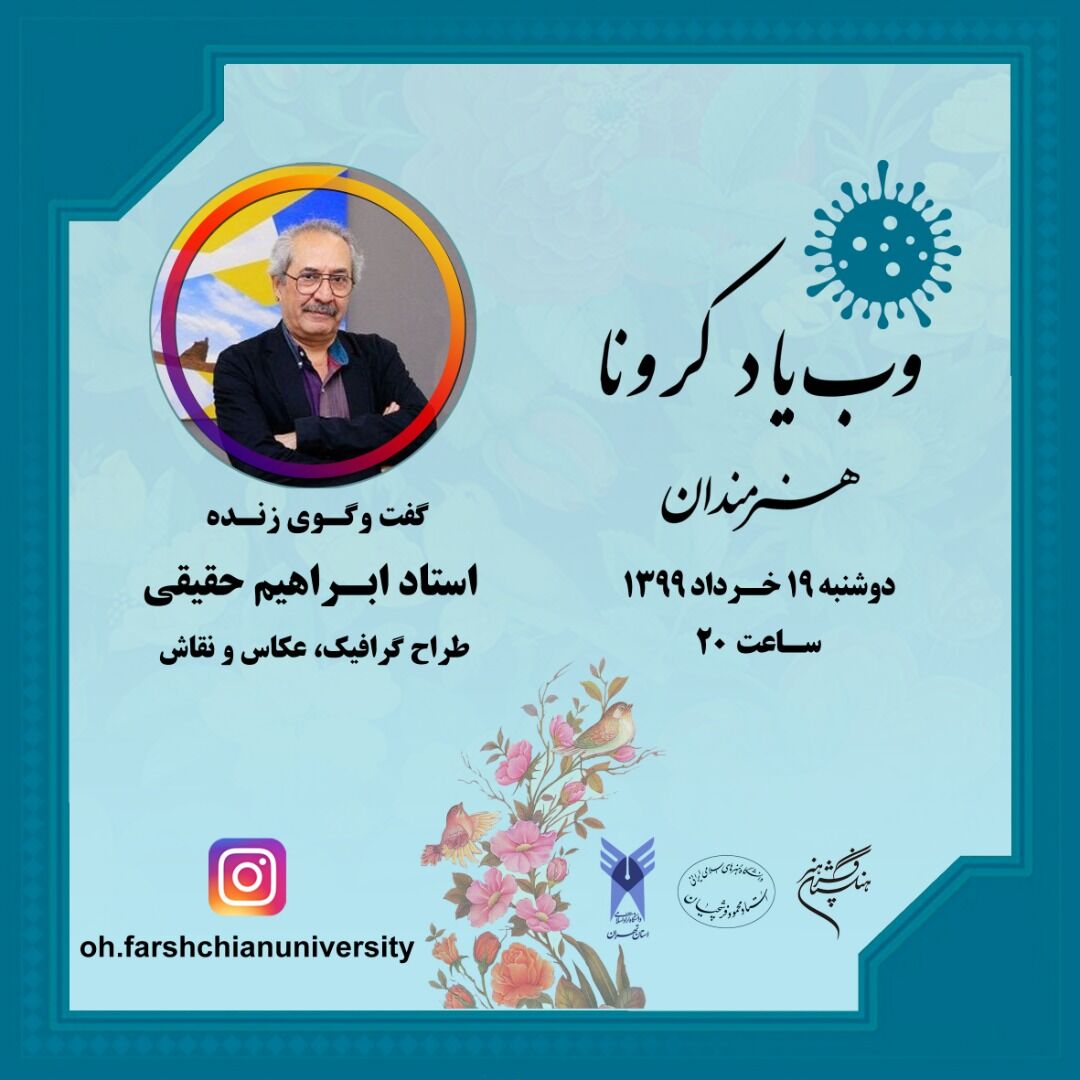 به گزارش روابط عمومی مرکز هنرهای تجسمی به نقل از روابطعمومی فرهنگستان هنر، دومین برنامه وبیاد کرونا دوشنبه 19 خرداد 1399 ساعت 20 به گفتوگوی زنده با ابراهیم حقیقی، طراح گرافیک، عکاس و نقاش اختصاص دارد.