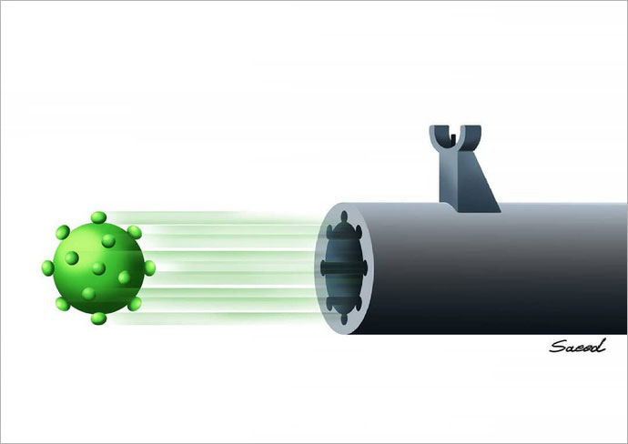 در ادامه، شماری دیگر از کارتون‌های «سعید صادقی» با موضوع کرونا را مشاهده می‌کنید :