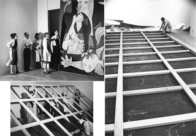 پیکاسو پس از مطلع شدن از واقعه، عمیقاً متأثر می‌شود. خبر باورنکردنی جنایت تازه‌ای که با خونسردی علیه مردم غیرنظامی انجام ‌گرفته ولوله‌ای بر پا می‌کند و توسط مطبوعات و رادیو منعکس و شرح و بسط داده می‌شود. در اول ماه مه، پیکاسو طرح‌های اولیه تابلوی خود را می‌کشد. ابتدا طرح‌های گوناگون از مجموعه کار و سپس تصویر ناشیانه اسبی با قلمی کودکانه و اسب زانوزده دیگری که شیهه می‌کشد، گاوی خونسرد، مادری رنجیده که در حال فرار جسد فرزندش را در آغوش دارد و بالاخره چهره‌های شکسته که در جاهای مختلف پراکنده‌اند. در مجموع برخی از نقاشی‌ها و آثار گواش هنرمند به گرنیکا شبیه هستند که تاکنون چهل‌و‌پنج مورد از آن‌ها شناخته شده است.