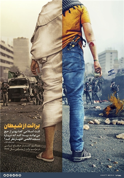 پوستر «برائت از شیطان» همزمان با آغاز موسم حج و با بالا گرفتن فشار صهیونیست‌ها بر مردم مظلوم فلسطین، توسط محمد شکیبا طراحی شد.