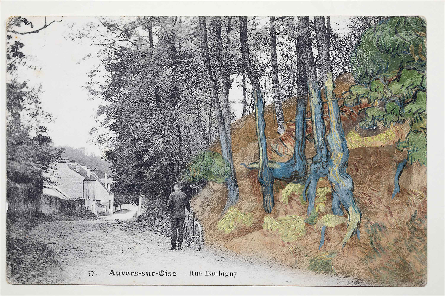 «ون در وین» پس از بازگشایی فرانسه در ماه «می» به محلی که تصویر کارت پستال در آن عکسبرداری شده سفر کرد. تابلو نقاشی «ریشه درخت» در جادهای در شهر «اور سور اواز» جایی در چند کیلومتری مکانی که «ونگوگ» ۷۰ روز پایانی زندگیاش را گذرانده بود، خلق شده است.