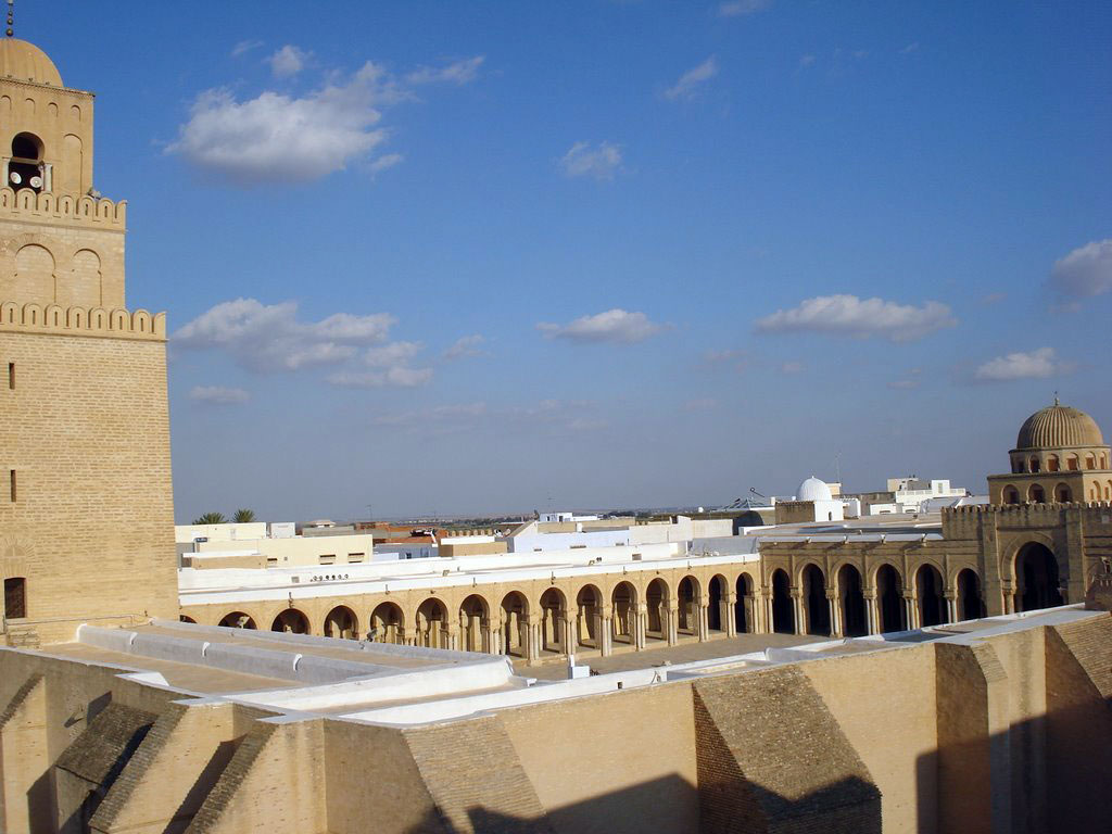 قیروان یکی از نخستین شهرهای شمال آفریقا بود که تحت حکومت اسلامی درآمد. این مسجد که با نام مسجد «عقبه بن نافع» شناخته میشود در سال ۶۷۰ میلادی به دستور «عقبه بن نافع» یکی از فرماندهان اموی ساخته شد. در سال ۸۳۶ میلادی بازسازی قابلتوجهی در این بنا صورت گرفت. این مکان هم منعکسکننده دورههای مختلف تاریخی این منطقه است. چهار مناره این مسجد در چهار دوره مختلف تاریخی ساخته شدهاند.