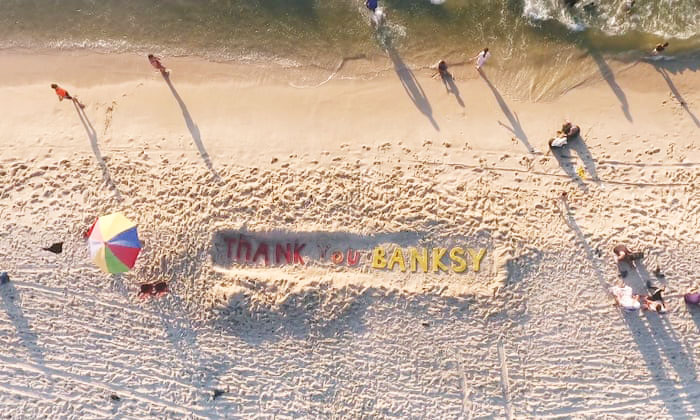 همزمان با این رویداد، هنرمندانی در غزه نیز با استفاده از تختههای چوب عبارت "بنکسی متشکریم" را روی ساحل به نمایش گذاشتند. چهار اثر هنری «بنکسی» در غزه قرار دارد.