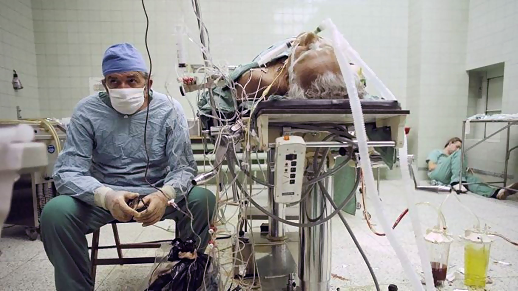در این عکس، می‌بینیم که حواس دکتر زبیگنیو رلیگا به علائم حیاتی بیماری است که به مدت ۲۳ ساعت عمل پیوند قلب بر روی او انجام داده است. در گوشه سمت راست، یکی از دستیاران او که در عمل جراحی شرکت داشته به خواب رفته است.