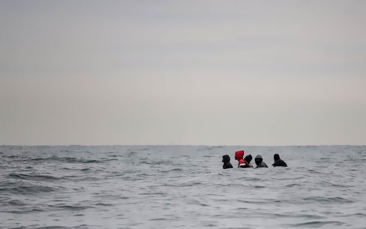 گروهی از مهاجران که پس از عبور از کانال انگلستان به سواحل «دوور» رسیده‌اند