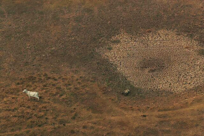یک گاو در منطقه خشک‌شده واقع در پانتانال، بزرگترین پهنه تالاب گرمسیری جهان/ منبع: رویترز