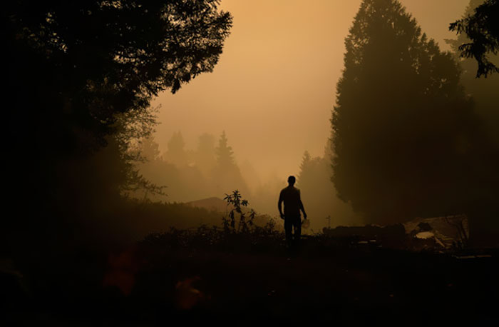 تصویری از یک مرد و خانه‌ای که در اثر آتش‌سوزی «ریورساید» نابود شده است(ایالات متحده) / منبع: خبرگزاری فرانسه