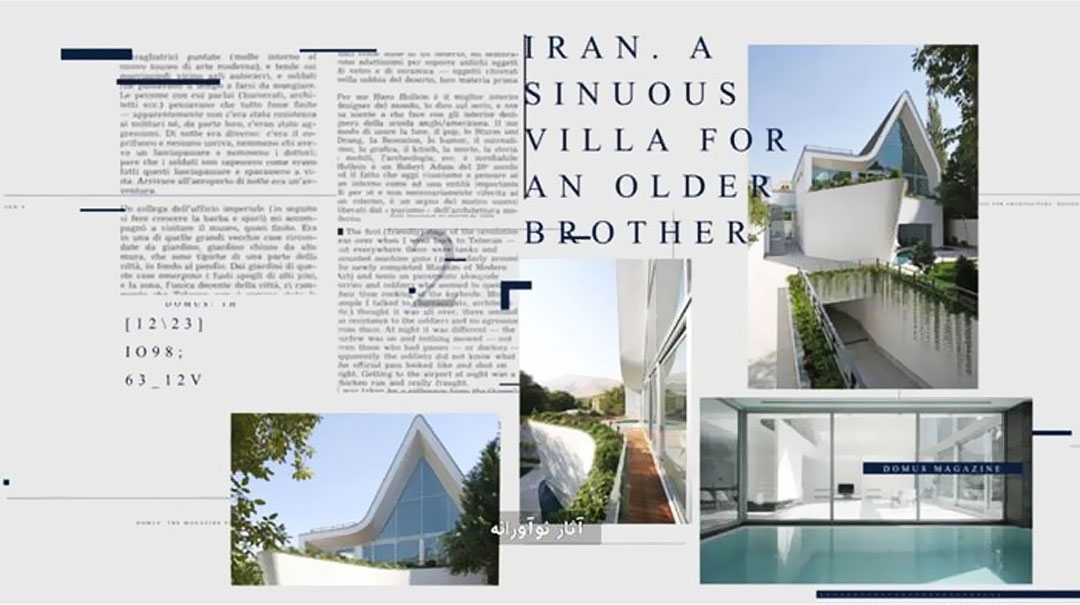 این مجموعه که نگاه دوموس به ایران/ Domus’ Eyes on Iran نام دارد شامل ۱۰ قسمت مستند است که مراحل اصلی توجه مجله دوموس به اجرای پروژههای معماران و طراحان ایرانی و ایتالیایی در ایران همچنین نشان دادن نقش پررنگ و برجسته ایران در تاریخ معماری و طراحی مدرن و ارتباط پیوسته و بارور آن با عرصه معماری و طراحی ایتالیا را نشان میدهد.