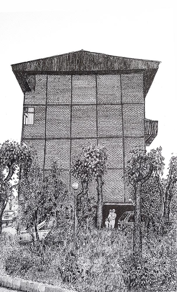رخنه. آرزو شهدادی. راپید و آب مرکب بر روی مقوا. ۱۳۹۸. عکس: سایت گالری محسن