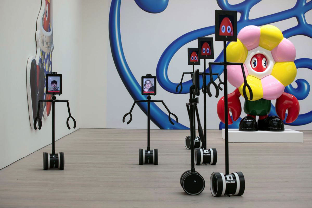 در این نمایشگاه رباتهای کنترل از راه دور که دوربینهایی بر روی آنها نصب شدهاند فقط مختص بازدیدکنندگانی هستند که به صورت فیزیکی در محل نمایشگاه حاضر نشدهاند.