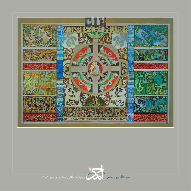 هنرمندانی که آثارشان از گنجینه موزه هنرهای معاصر در این نمایشگاه عرضه میشود عبارتند از: محمدباقر آقامیری اثری به نام محبت ازلی، ضیاءالدین امامی اثری با نام آفرینش آدم، اصغر جوانی اثری به نام اسراء، رافت نگارنده اثری به نام منور، حبیباله آیتالهی اثری به نام کعبه نور، نصراله افجهای اثری به نام مجلس اول، محمد احصایی اثری به نام لا اله الا الله، جلیل رسولی با اثر سوره حمد.