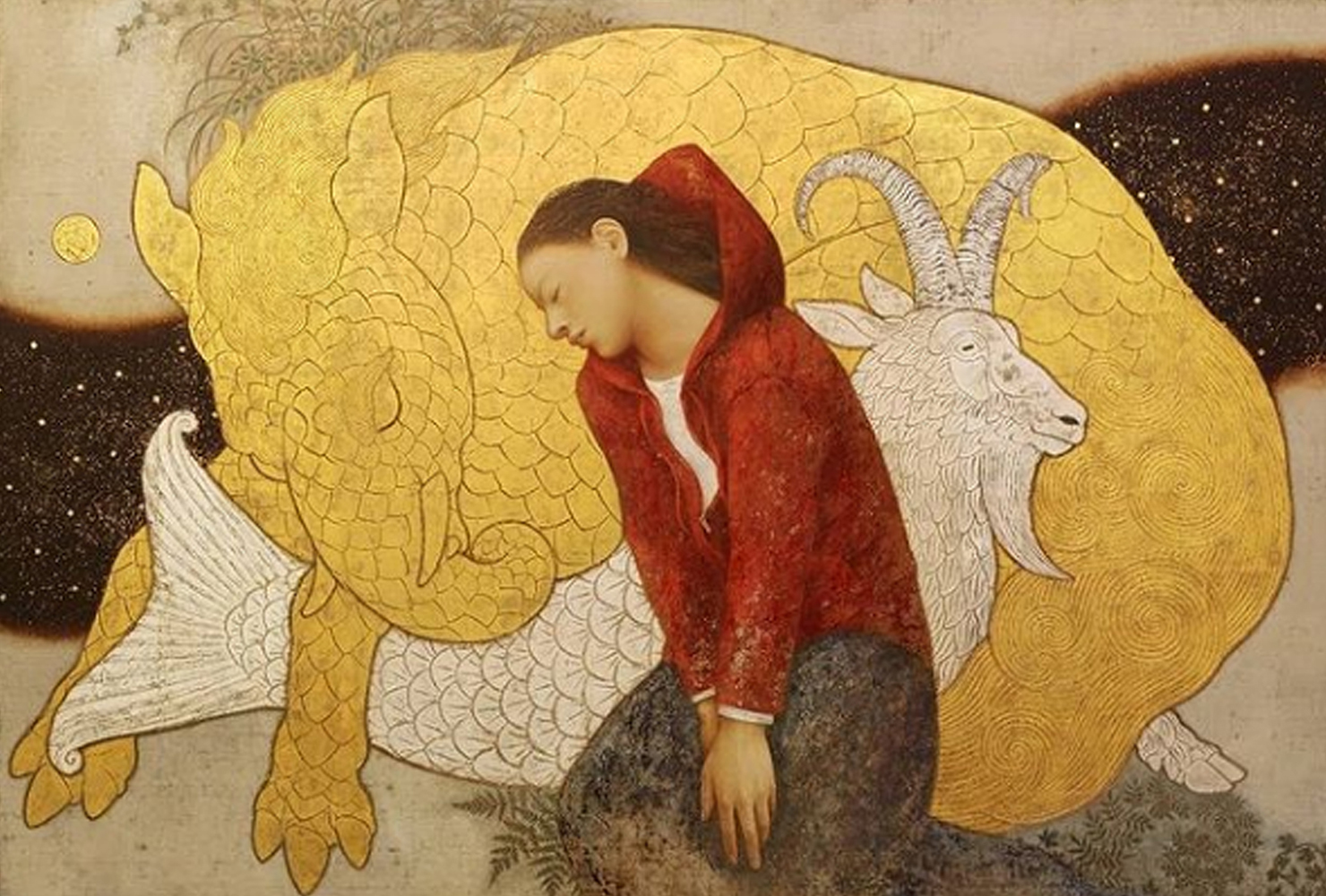 برج جدی/ رنگ و روغن، آکریلیک، ورق طلا و نقره روی بوم