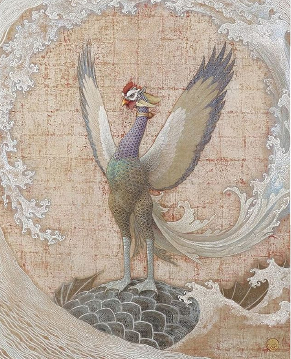 پرنده آب، مرغ خیالیِ چین/ آکریلیک و رنگدانه های معدنی/ 2016