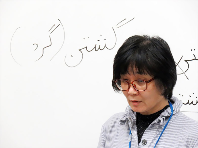 خانم هیساکو تسونادا هنگام آموزش زبان فارسی به نوآموزان ژاپنی