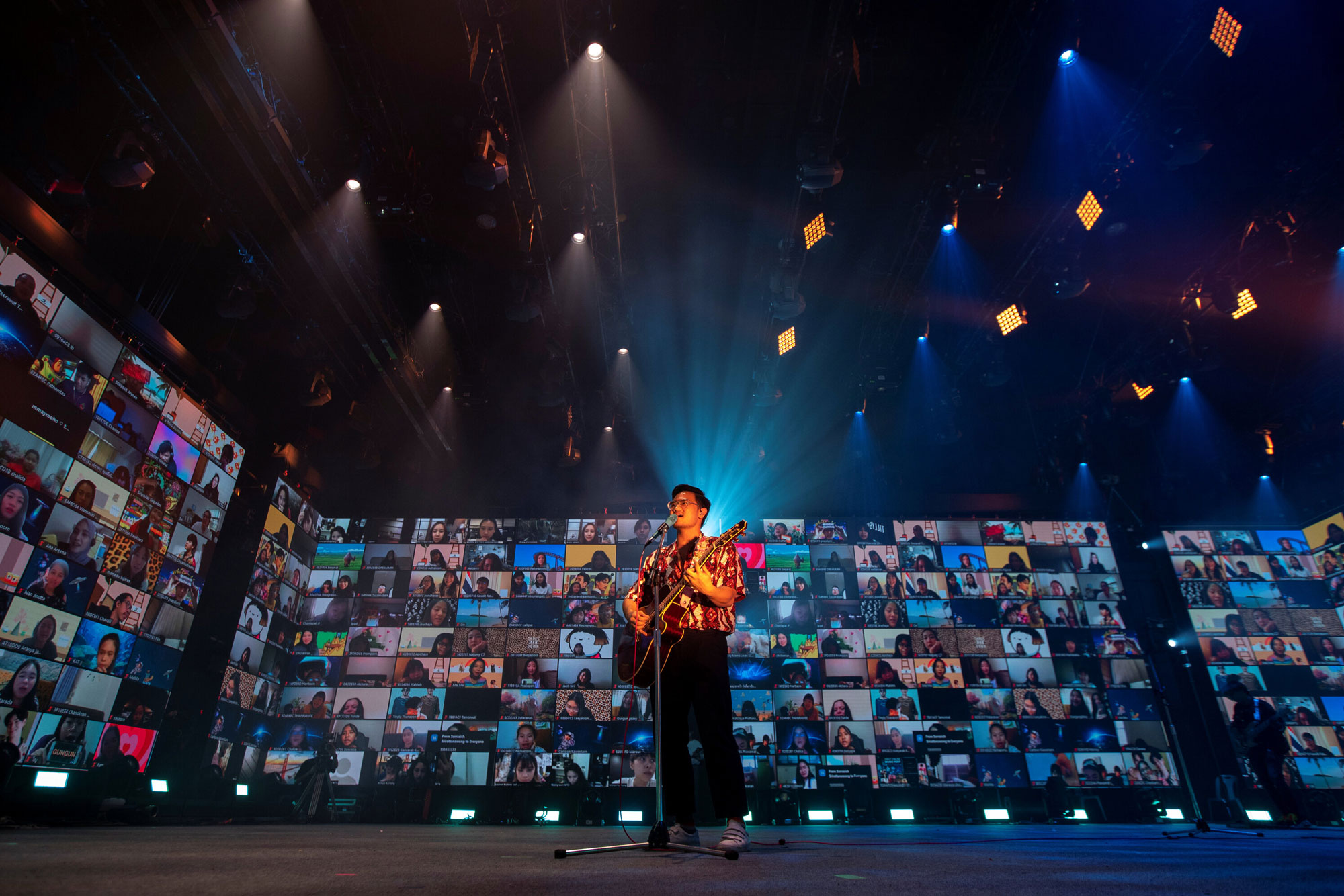 یک هنرمند در جریان یک فستیوال موسیقی ۶ ساعته از طریق برنامه «زوم» به صورت آنلاین برای تماشاگران برنامه اجرا میکند / تایلند/ ۷ ژوئن ۲۰۲۰