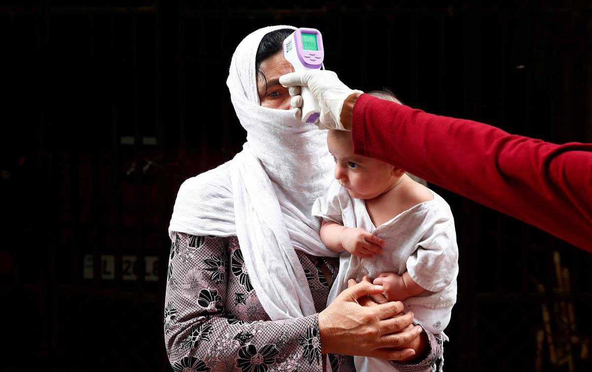 برای اجرای اقدامات پیشگیرانه، دمای بدن ساکنان منطقه مسکونی در دهلینو اندازهگیری میشود / هند / ۲۰ آوریل ۲۰۲۰