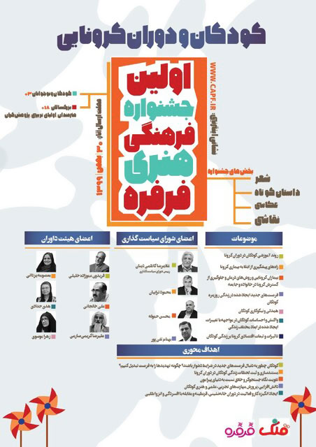 جشنواره فرهنگیهنری «فرفره» در دو بخش هنری: ۱-عکاسی، ۲-نقاشی و ادبی: ۱-شعر، ۲-داستانکوتاه برگزار خواهد شد.