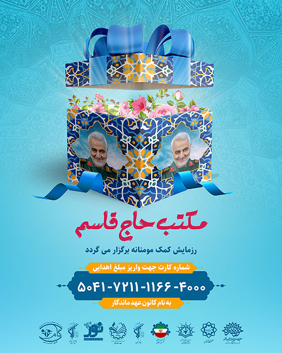 محمود خواجه نژاد درادامه گفت: عهدواره مکتب حاج قاسم با همکاری حوزه هنری ،شورای اسلامی شهر گرگان،شهرداری گرگان،سپاه گرگان،کانون حمایت از کودکان "گلهای احسان و مهر" و کانون فرهنگی ،اجتماعی و تبلیغی "عهد ماندگار" برگزار خواهد شد.