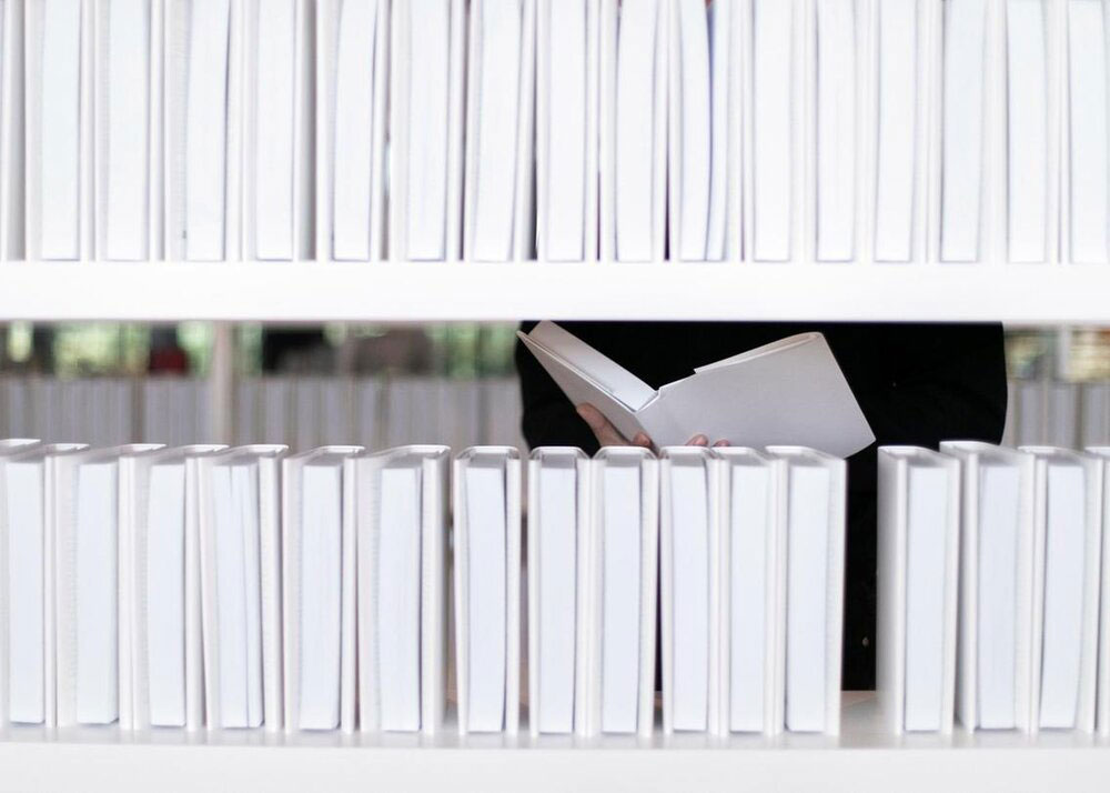 به گزارش روابط عمومی مرکز تجسمی حوزه هنری به نقل از ایسنا، در طبقه دوم «بیتالحکمه شارجه» کتابخانه و مرکز فرهنگی واقع در امارات متحده عربی بیش از ۳۰۰۰ کتاب در قفسهها به نمایش گذاشته شده است با این تفاوت که صفحههای تمامی این کتابها سفید و خالی است؛ کتابهایی که حتی طرح روی جلد آنها هم بیآنکه عنوانی داشته باشند کاملا سفید هستند.
