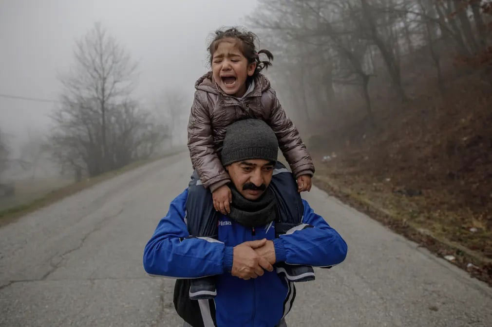 پدر و دختری که با هدف رسیدن به اتحادیه اروپا به سمت مرز کرواسی حرکت میکنند. در حال حاضر حدود ۳ هزار پناهنده از جمله چندین کودکان در خانههای متروکه و سکونتگاههای موقتی در شمال بوسنی در شرایطی که دما به زیر صفر رسیده است زندگی میکنند / بوسنی و هرزگوین