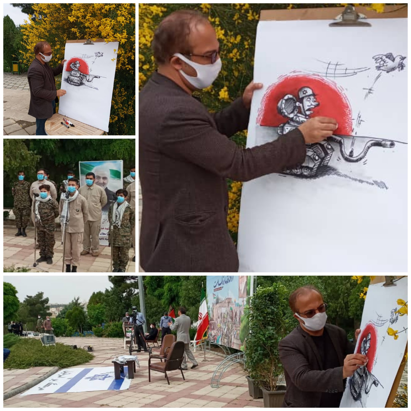در روز جهانی قدس، فخرالدین دوست محمد کارتونیست حوزه هنری کرمانشاه با زبان هنر به ترسیم جنایت های رژیم کودک کش صهیونیست پرداخت.