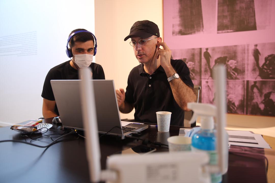 هرکدام از اساتید در یک سالن خالی پشت میزی نشست تا به وسیله لپتاپ، تلفن و اپلیکشینهای مختلف، نظارت دقیقی بر کار شرکتکنندگان داشته باشد و در هرلحظه بتواند راهنماییهای لازم را نهتنها بهصورت گفتاری که حتی با رسم کردن نکات لازم روی کاغذ، به هنرمندان جوان منتقل کند.