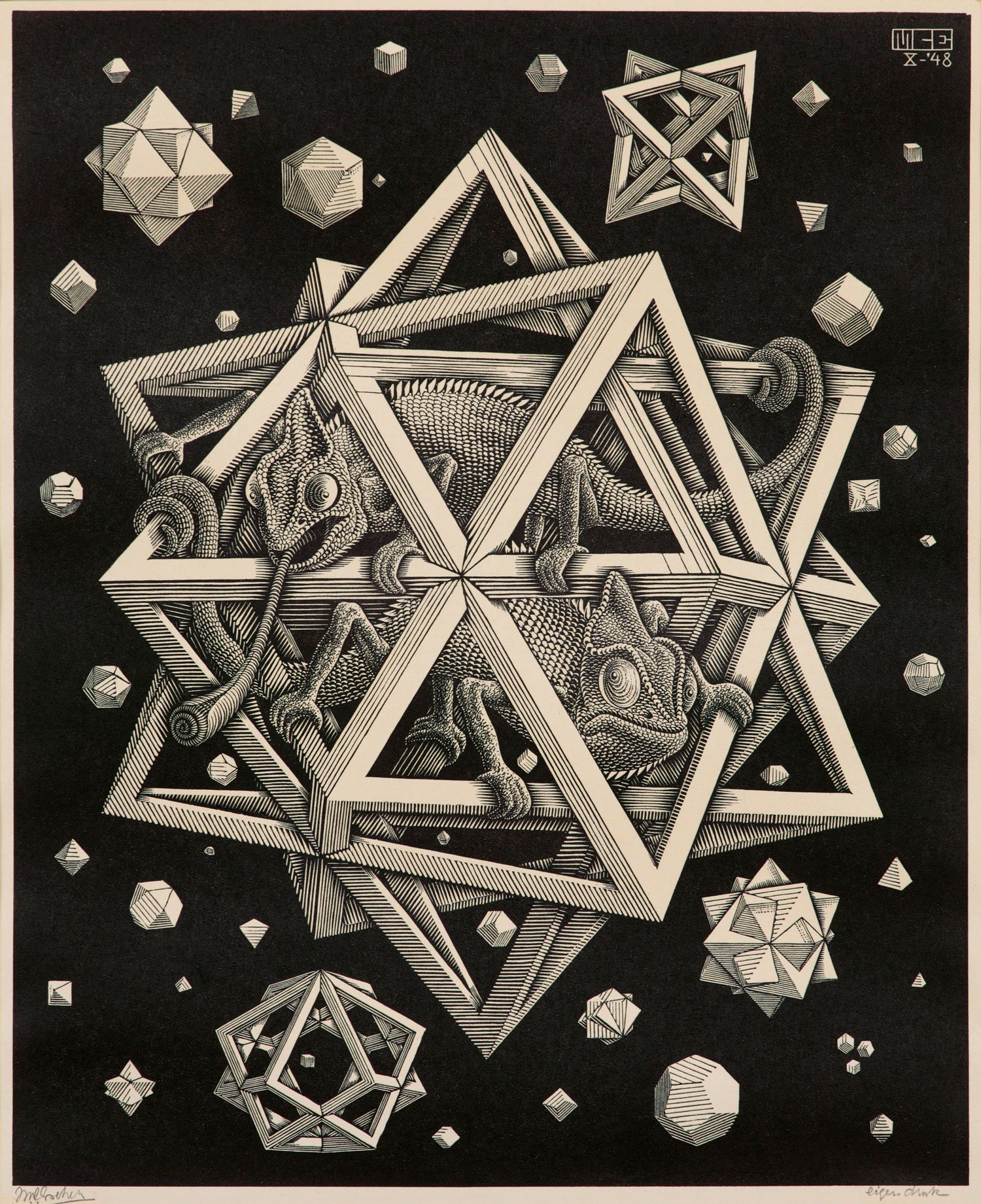 «موریتس اشر» متولد قرن نوزدهم میلادی در ایالت فریسلند هلند است که چنان دنیایی خارق‌العاده از زمان، فضا و واقعیت‌های بصری آمیخته با نوآوری را خلق کرد که پرسپکتیو پیش آن مبتذل و کوچک جلوه می‌کند. در آثار او جای مثبت و منفی به طرزی شگفت‌آور با هم عوض می‌شود و بیننده کاملا مسحور و ناباور باقی می‌ماند.