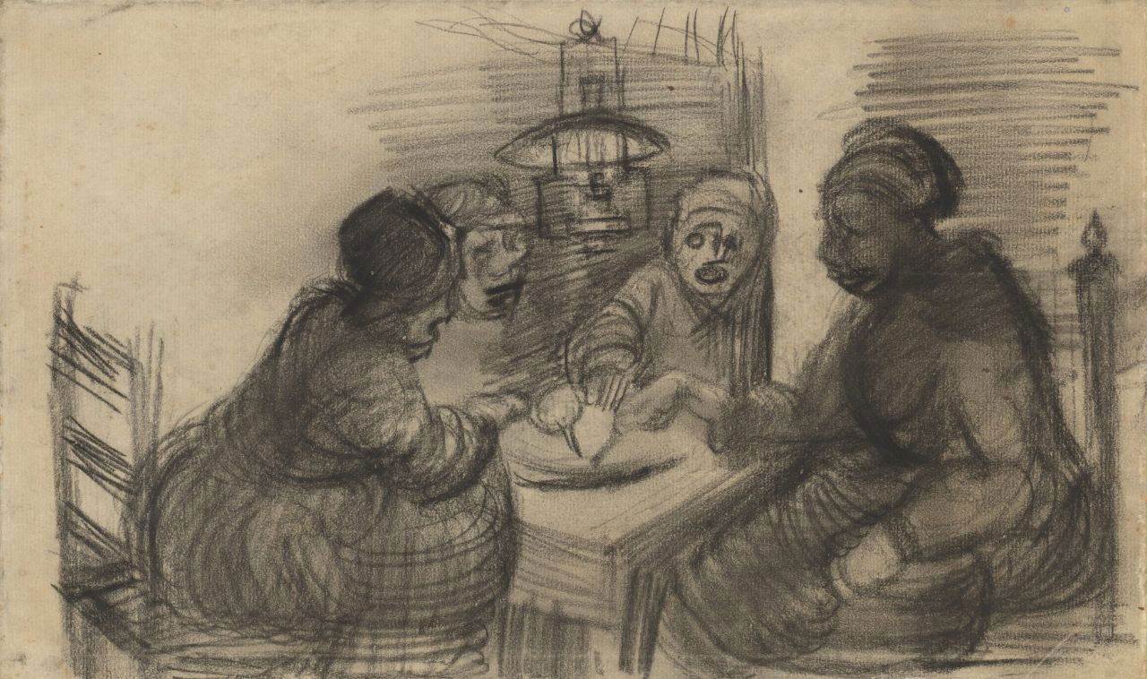 نقاشی «سیبزمینیخورها» که در سال ۱۸۸۵ خلق شد و خانوادهای را به تصویر میکشد که مشغول صرف غذای سادهای که از سیبزمینی تهیه شده، هستند. «ونگوگ» این نقاشی را زمانی که در روستای «نوینن» بود خلق کرد. اعضای این خانواده که به نظر میرسد «ونگوگ» با آنها آشنایی زیادی داشت در آثار دیگری از این هنرمند نیز به چشم میخورند.