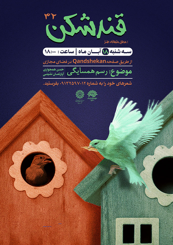 محفل سی و دوم از طریق صفحه Qandshekan در فضای مجازی منتشر میشود.