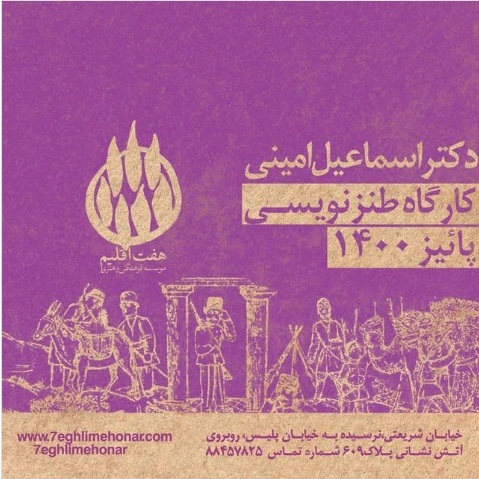 کارگاه شناخت طنز و فنون طنز نویسی با حضور استاد ارجمند دکتر اسماعیل امینی در موسسه فرهنگی و هنری هفت اقلیم برگزار میشود.