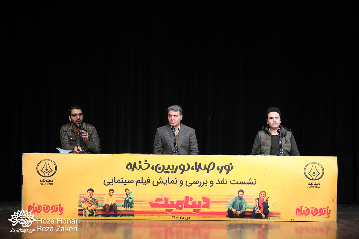دوره جدید «نور، دوربین، خنده» چهارشنبه (29 دی) با اکران فیلم سینمایی دینامیت در حوزه هنری آغاز و نیز نقد و بررسی آن با حضور مسعود اطیابی کارگردان فیلم و شاهین شجری‌کهن منتقد سینما و حاضران در سالن برگزار شد.