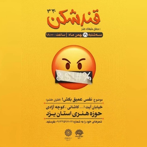 به گزارش روابط عمومی دفتر طنز حوزه هنری سی و چهارمین محفل طنز «قندشکن» با موضوع کنترل خشم در حوزه هنری استان یزد برگزار میشود. در این محفل ادبی شاعران و طنزپردازان استان، آثار طنز خود را با عنوان «نفس عمیق بکش» و با موضوع کنترل خشم و موضوع آزاد ارائه میکنند.