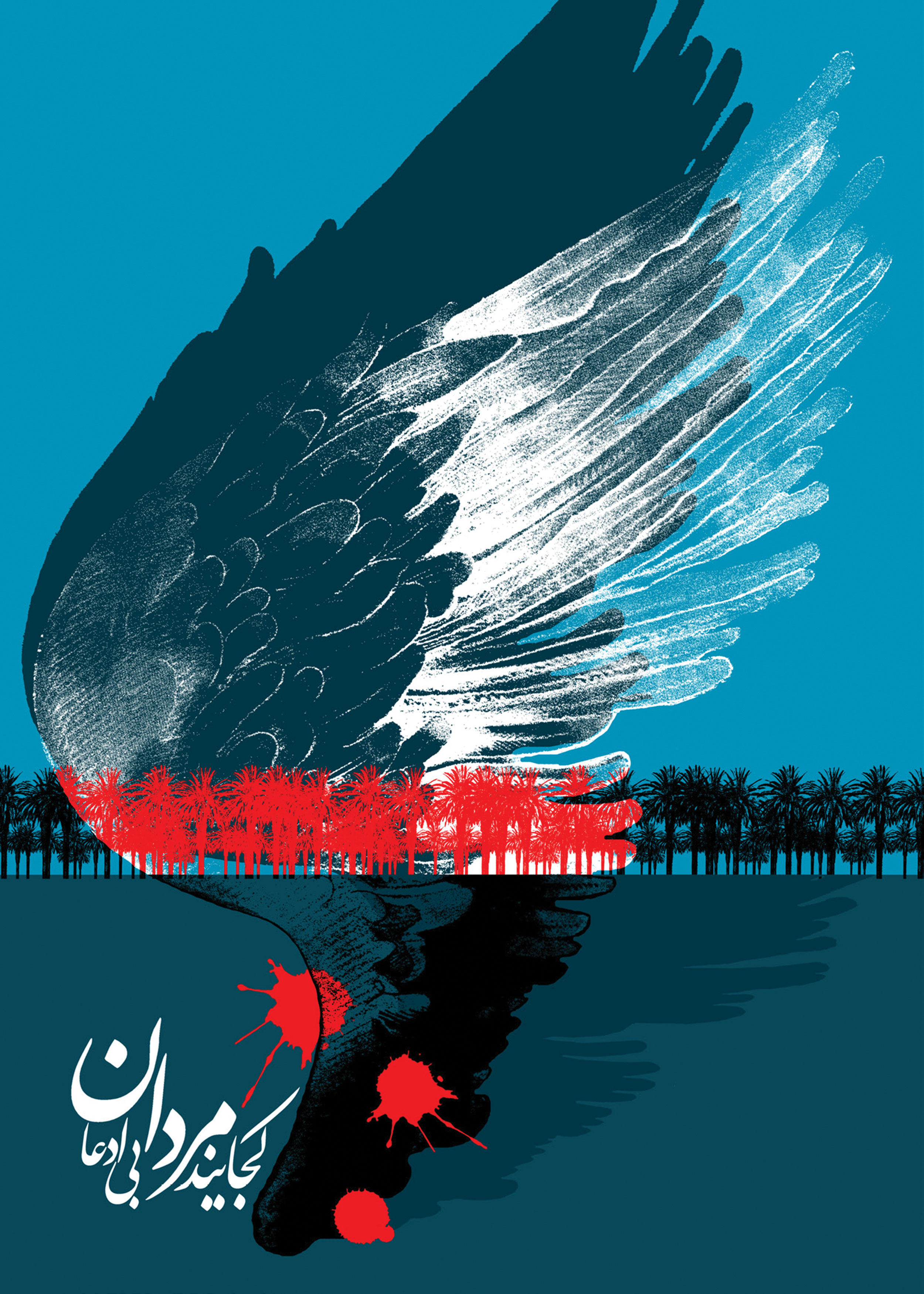 پوستر کجایند مردان بی ادعا را می توان یک کلاس آموزش تصویری برای مخاطبان عرصه گرافیک در حوزه طراحی پوستر دانست. بخش مهم و اعظم اثر به بال پرنده اختصاص دارد که در تلاقی با خط افق نخلستان هایی را نشان می دهد که حسی از فضای جبهه های حق علیه باطل را توصیف می کند، نمایش این بال، قطرات خون و نوشته ای که بر پوستر با عنوان:"کجایند مردان خدا" حسی از دلتنگی را در دل مخاطب می نشاند. شاید بهترین تفسیر دراینباره را می توان در کلام شهید اهل قلم، استاد مرتضی آوینی یافت:"اما چه دشوار می نماید طی این عرصات! آنان که به مقصد رسیده اند می گویند میان ما و شما تنها همین «خون» فاصله است ؛ تا سدره المنتهی را با پای عقل آمده ای، اما از این پس جاذبه جنون ، تو را خواهد برد... طی این مرحله دیگر با پای اراده میسور نیست ؛ بال می خواهد و بال را به عباس می دهند که دستانش را در راه خدا قربان کرد. این حسین است که عرصات غایی خلافت تکوینی انسان را تا آنجا پیموده است که دیگر جز جان میان او و مقصود فاصله نیست."