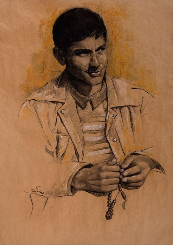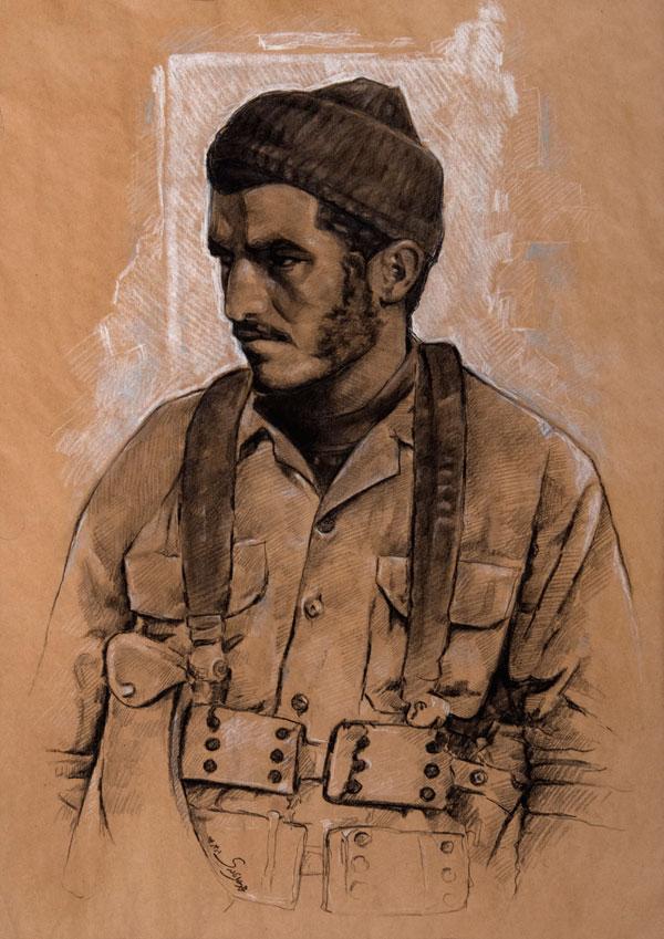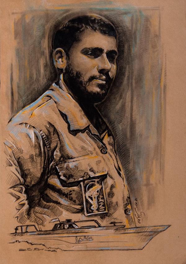 در بین پرتره‌های شهدا از این هنرمند نسل سومی، پرتره‌ای از شهید «نادر مهدوی» دیده می‌شود؛ کسی که غرور آمریکایی‌ها را در خلیج فارس شکست.
