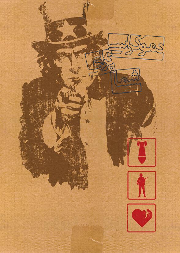 دیک بغوسیان هنرمند خوب ایرانی در جشنواره اول مقاومت پوستری با عنوان دموکراسی برای شما طراحی کرد. این پوسترمنتخب این جشنواره شد. اما بد نیست به عنصر اصلی در این پوستر نیم نگاهی داشته باشیم.بغوسیان از نماد عموسام به عنوان نماد آمریکا در طراحی پوسترش استفاده کرده است ، اما چرا عمو سام؟