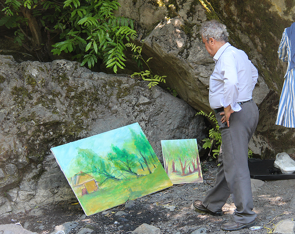 گزارشی از حضور نقاش پیشکسوت حوزه هنری در اردبیل/ برگزاری نمایشگاه نقاشی و چندین ورک‌شاپ با حضور علی محمد شیخی در طبیعت زیبای اردبیل