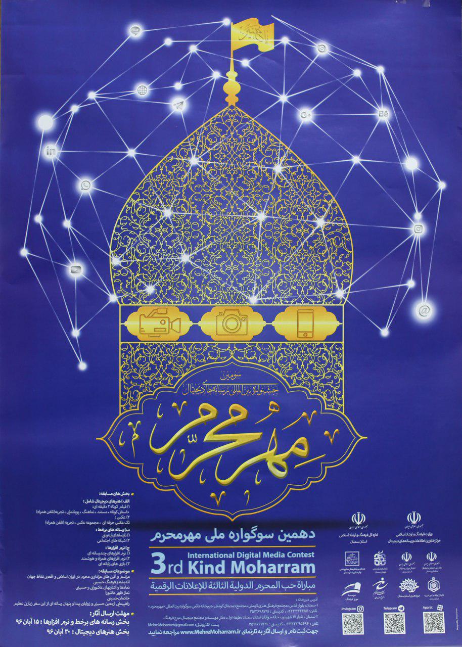 شایان ذکر است دهمین سوگواره ملی «مهر محرم» با همکاری مرکز فناوری اطلاعات و رسانه های دیجیتال وزارت فرهنگ و ارشاد اسلامی، اداره کل فرهنگ و ارشاد اسلامی استان سمنان، موسسه موج فرهنگ، حوزه هنری استان سمنان، دفتر امور اجتماعی و فرهنگی استانداری سمنان، اداره کل ورزش و جوانان استان سمنان، سازمان فرهنگی ورزشی شهرداری سمنان، اداره کل میراث فرهنگی، صنایع دستی و گردشگری استان سمنان، اداره کل اوقاف و امور خیریه استان سمنان و سازمان بسیج هنرمندان استان سمنان برگزار خواهد شد.