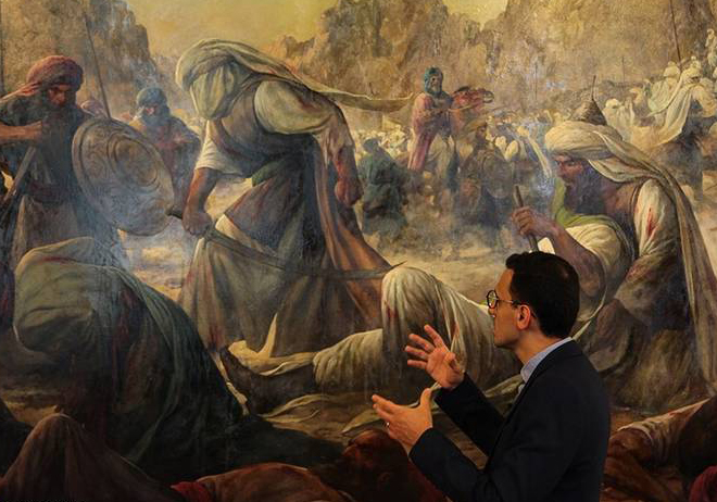 خالق «آخرین سرباز لشگر» با تاکید بر تاثیرگذاری شگرف هنر نقاشی در نگاه مخاطبان، هنر عاشورایی را یک روضه خوانی دانست و افزود: «با تصویر می توان بیان جامع تری از واقعه عاشورا صورت داد. کلام نقاشی بسط و گسترش بیشتری دارد. خیلی خودمانی بگویم که اصلا خودم را هنرمند نمی دانم و فقط به دنبال این هستم که یکسری از مفاهیم و روایات را که در ذهنم وجود دارد، تصویری کنم. این انتقال باید هم جنبه احساسی داشته باشد و هم مستند و رئال باشد. ما فقط می خواهیم بگوییم اتفاقاتی در عاشورا افتاده است. وقتی سیدالشهدا به شهادت رسیده است به دیدار محبوبش می رود و ارتفاعی بالاتر از این نداریم.»