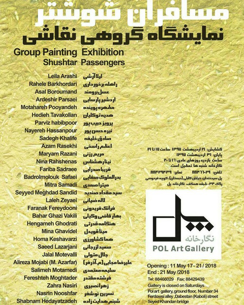 نمایشگاه گروهی نقاشی «مسافران شوشتر» در نگارخانه پل که روز 21 اردیبهشت آغار شده تا 31ام همین ماه ادامه دارد.
