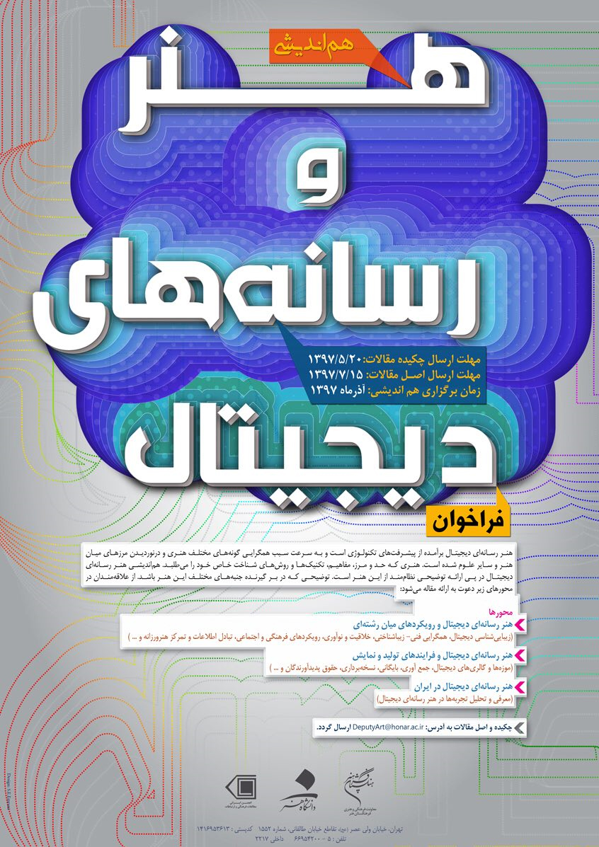 معاونت فرهنگی و هنری فرهنگستان هنر از همه علاقهمندان و پژوهشگران این حوزه، دعوت میکند تا 20 مردادماه 1397، چکیده مقالات خود را به رایانامه DeputyArt@honar.ac.ir ارسال کنند. مهلت ارسال اصل مقالات نیز تا 15 آبان ماه 1397 خواهد بود.