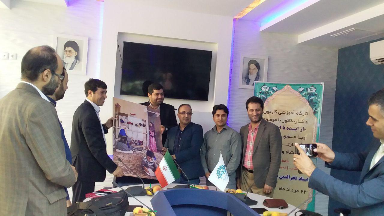 ورک شاپ تخصصی کارتون از ایده تا اجرا ، با حضور نویسنده کتاب دنیای وارونه من استاد فخرالدین دوست محمد و اعضای خانه کاریکاتور کردستان و کرمانشاه / مردادماه 97 حوزه هنری استان کردستان