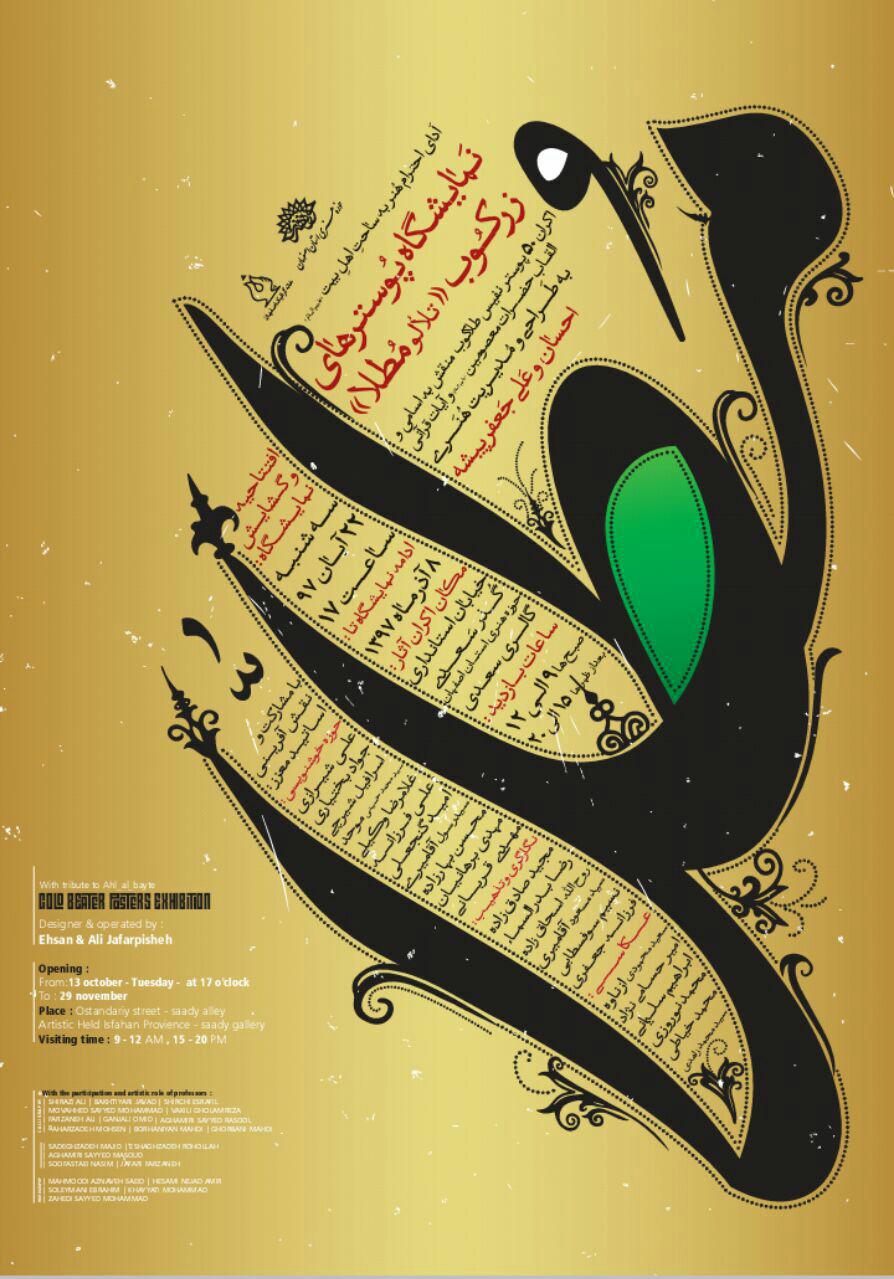 به گزارش روابط عمومی حوزه هنری استان اصفهان، در این نمایشگاه 50 پوستر نفیس طلاکوب ( و تکنیک های چاپی نفیس دیگر) ، منقش به اسامی و القاب حضرات معصومین (علیهم السلام) و آیات قرآنی، به طراحی و مدیریت هنری «احسان و علی جعفرپیشه »(بین سالهای 87 تا 97 ) ارائه می شود.