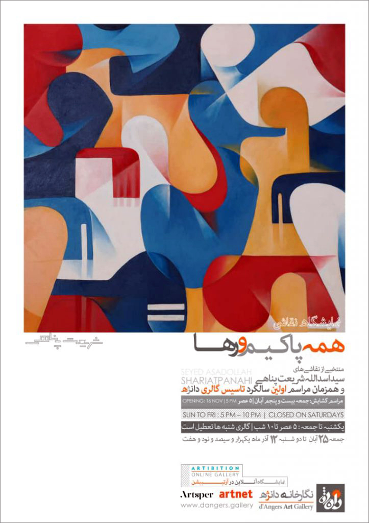 آیین گشایش این نمایشگاه روز جمعه ۲۵ آبان از ساعت ۵ عصر در محل گالری دانژه برگزار می شود، در این نمایشگاه ۱۴ اثر با تکنیک رنگ روغن از سید اسدالله شریعت پناهی در معرض دید همگان قرار خواهد گرفت. این مراسم همزمان با اولین سالگرد تاسیس گالری دانژه نیز می باشد.