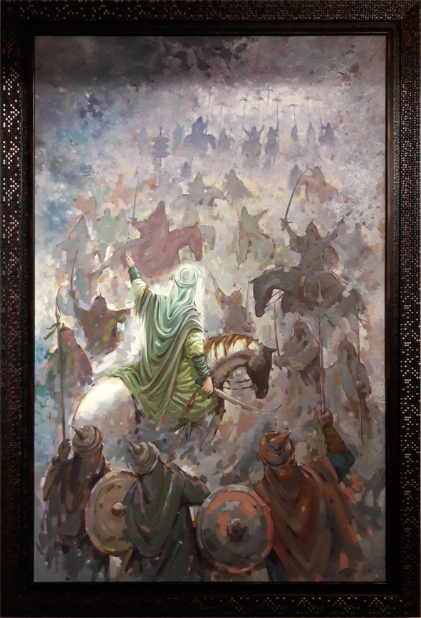 پیش از نگارش این سطور با بحرینی مذاکره دوستانهای پیرامون آثارش داشتم. مهربانانه و بیغرض با او سخن گفتم و او نیز بیتکلف و مشتاقانه شنید و من دیدم چقدر با این نقاش احساس دوستی دارم. برای همین به نظرم رسید که بخشی از آنچه به ایشان گفتم برای دوستان دیگر نیز بیان کنم، شاید برای کسانی که علاقمندند به مضامین و موضوعات دینی توأماً بپردازند به کار آید. تأکید بر جمع مضامین و موضوعات دینی مهم است. از این رو که اولی محدودیتهای دومی را در بیان درهم میشکند و راه را برای ورود خیال و شکست فضا و زمان و موقعیت به ویژه در هم آمیختن زمان و جغرافیا فراهم میسازد و تمامی اینها که برشمرده شدند ابزارهای شگرفی در دست هنرمند میشوند برای گسترش بیان مفهومی خود و ایجاد ایهام و استعاره و از همه مهمتر «راز» که مخاطب را جذب کند و همواره او را به کشف لایههای پنهان اثر بخواند؛ عاشقانه، عارفانه و البته با حفظ زیبایی ساختار اثر.