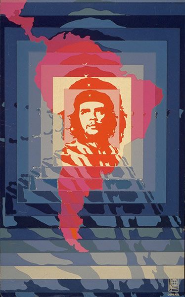 پوستر‌ سال‌ 1968، «روز رزمندگان قهرمان»، تصویری شعاری بود. پرتره‌ «چه‌ گوآرا»ی مسلح، به شکل مربع مستطیلهای تودرتویی، پشت سرهم‌ تکرار شده بود. این‌ پوستر‌، سرتاسر امریکای‌ جنوبی را فراگرفت‌. در‌ کوبا، مجله‌ خانوادگی‌ نیز‌ توسط «ادی سیونزآر»(Ediciones R)، پیشتاز طراحی‌ کتاب‌ کوبا، منتشر می‌شد. این مجله نیز متعلق به روزنامه «رولوسیون» و برای مردم‌‌ بی‌سواد‌ بود. پوسترهای این مجله، نمونه‌ای از‌ کوششهای گرافیکی جامعه‌ای، برای‌ گذراندن‌ دوره انتقال است.
