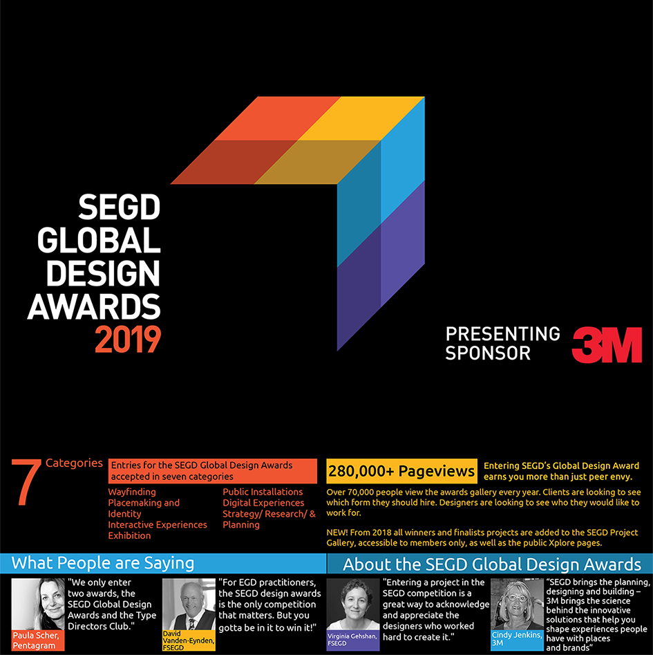 رقابت بین المللی طراحی SEGD از طراحان گرافیک، طراحان گرافیک محیطی، معماران، طراحان نمایشگاه، طراحان رسانه دیجیتال و ... برای شرکت در این رویداد دعوت می‌نماید.
